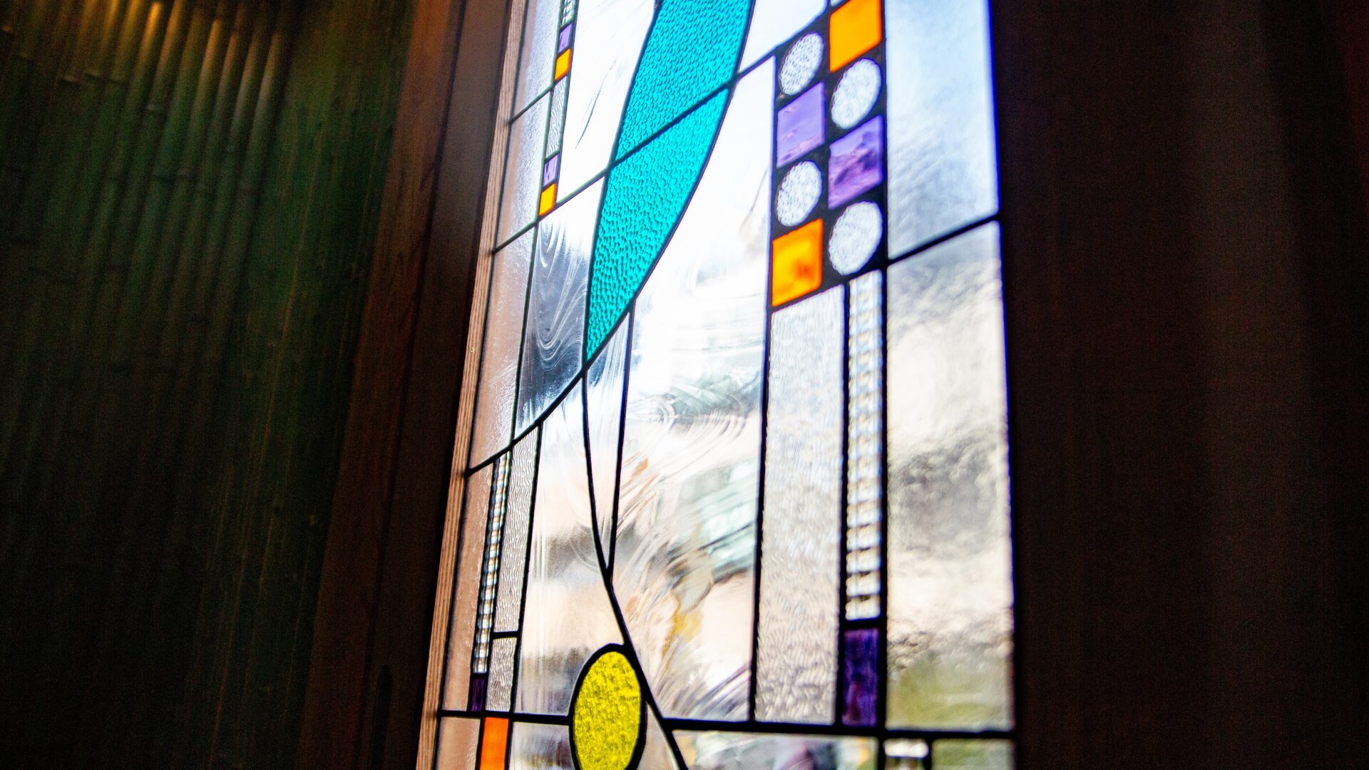 ステンドグラスの光と色の美しさに出会うデザインとした。