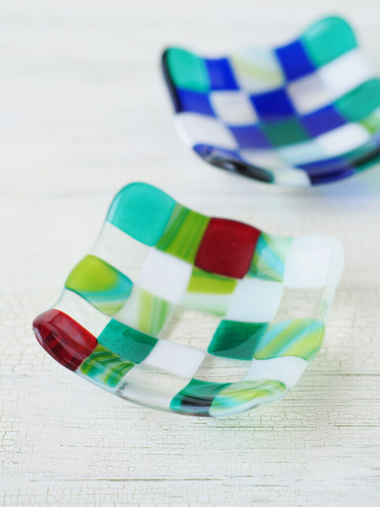 英語の「fuse」に由来し融合するという意味です。板ガラス、棒ガラスを電気炉(キルン)内で溶かして溶着させる技法です。